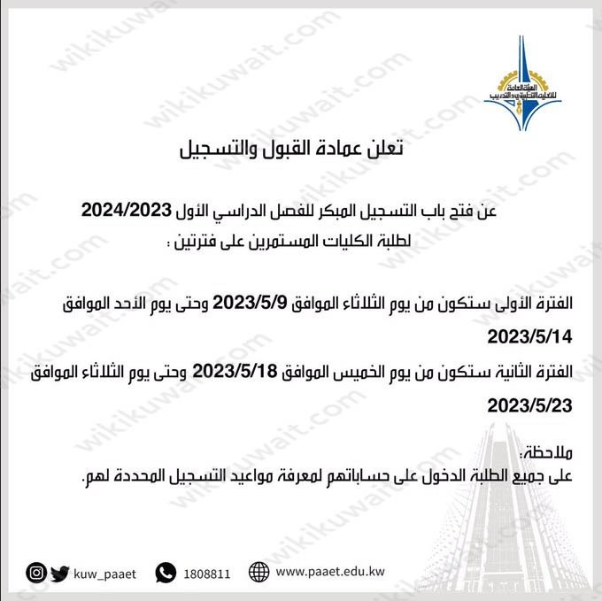 متى التسجيل للفترة الأولى في التطبيقي 2023 الكويت؟
