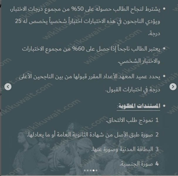 - أن يكون الطالب المتقدم للمعهد كويتي أو من أبناء الكويتيات.