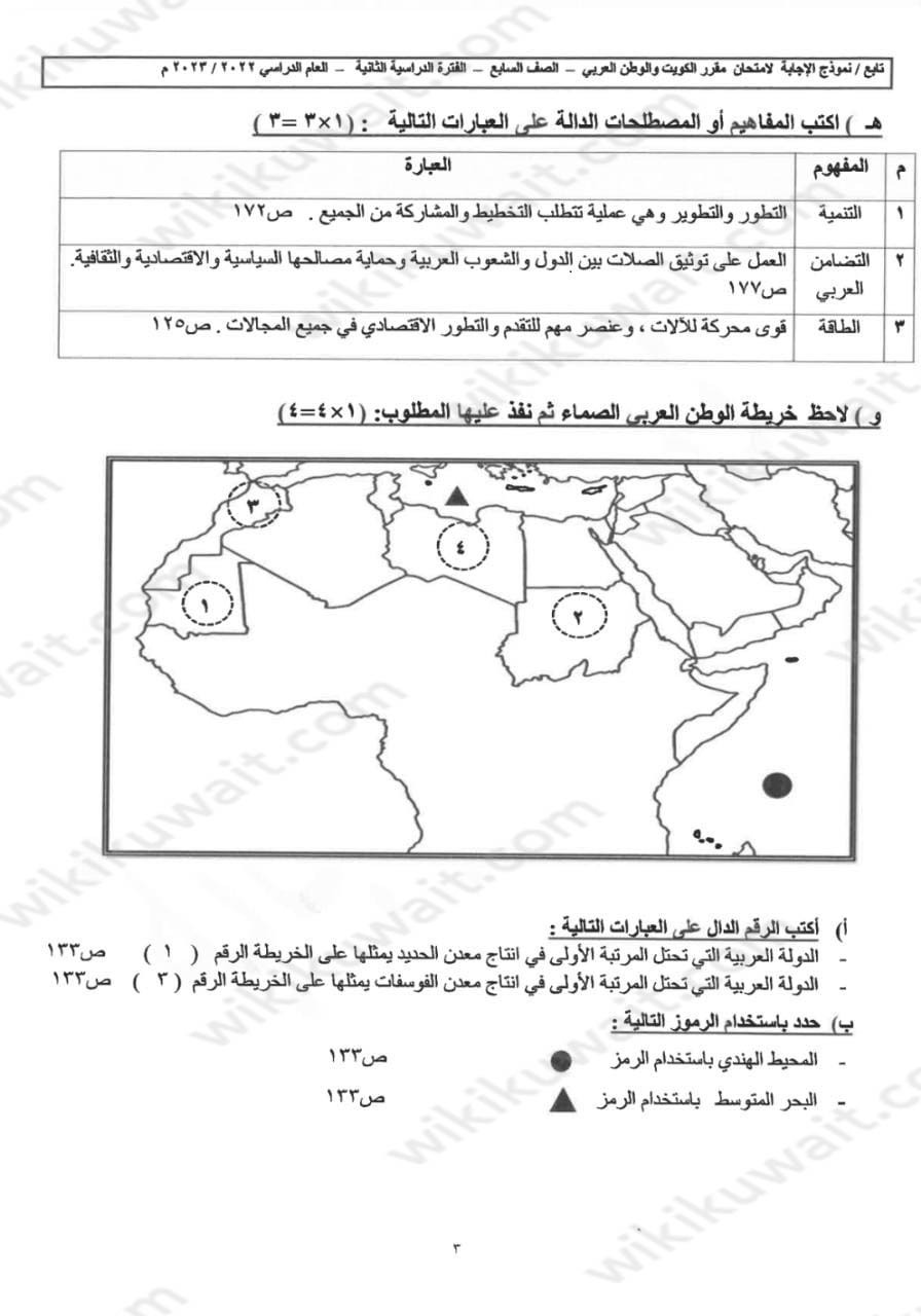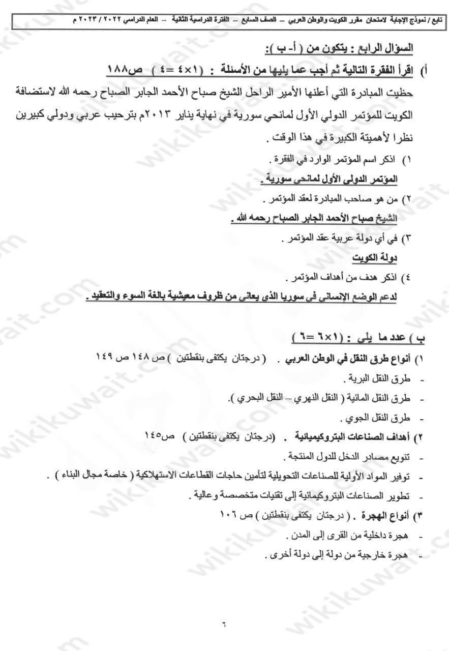 نموذج امتحان اجتماعيات للصف السابع الفصل الثاني 2024 الكويت pdf