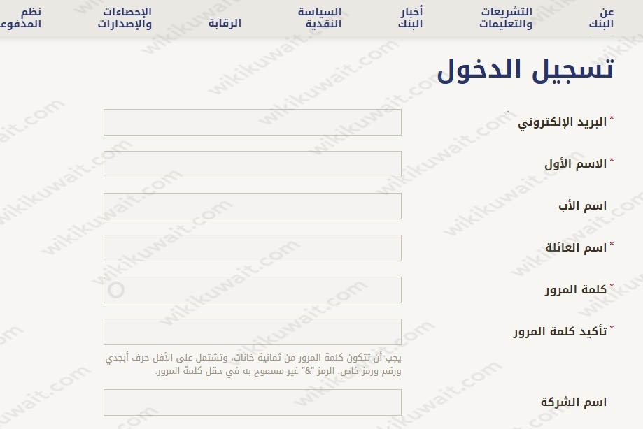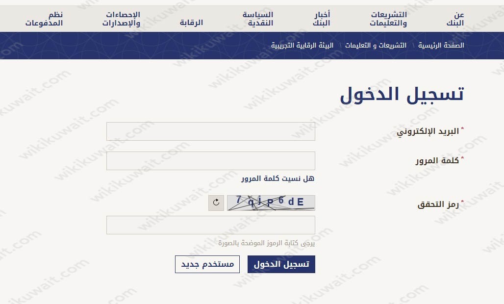 - التوجه إلى صفحة تسجيل الدخول إلى موقع البنك المركزي الكويتي الإلكتروني “من هنا“.
