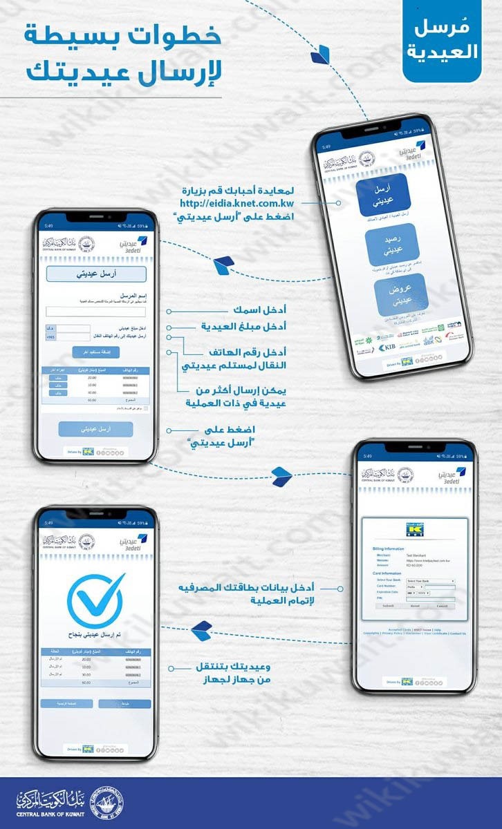 يمكن لعملاء البنوك المحلية في الكويت إرسال العيدية من خلال زيارة خدمة عيديتي واتباع الخطوات التَّالية:
