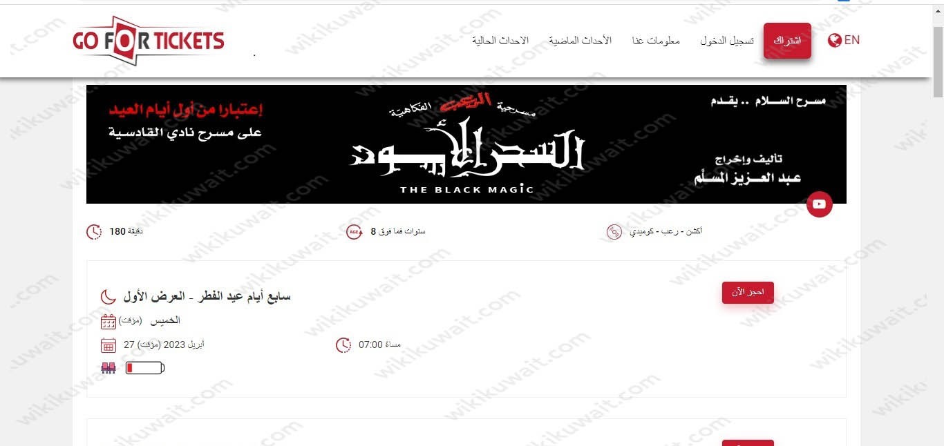 - ^gofortickets.com , حجز مسرحية السحر الأسود , 27/04/2023