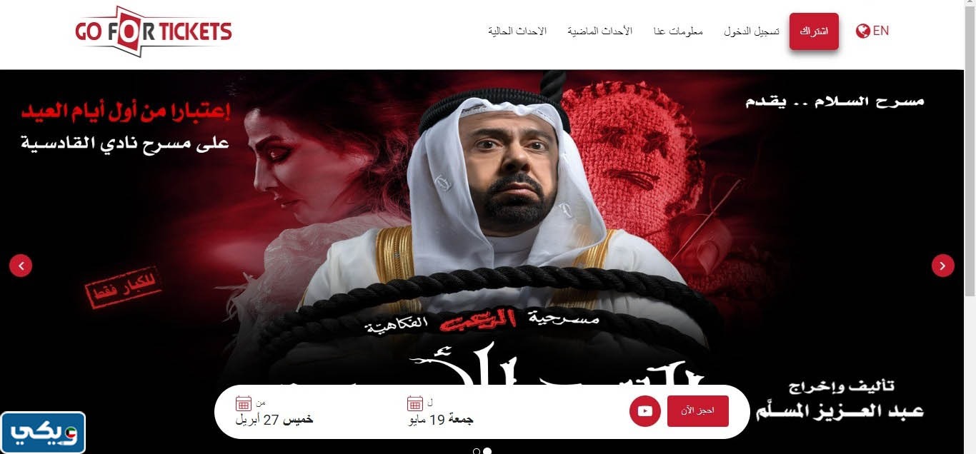 رابط حجْز مسرحية السحر الأسود gofortickets.com هو الموقع الإلكتروني Go For Tickets، وهو منصةٌ لحجْز التذاكر والفعاليات عبر الإنترنت، يسهلُّ الاطلاع على الأحداث القائمة؛ الحالية واختيار أنسب مواعيد الحضور، فضلًا عن الاطلاع على التسعير ومناطق الجلوس في الأحداث المراد حجزِها، بما فيها حجْز مسرحية السحر الأسود.