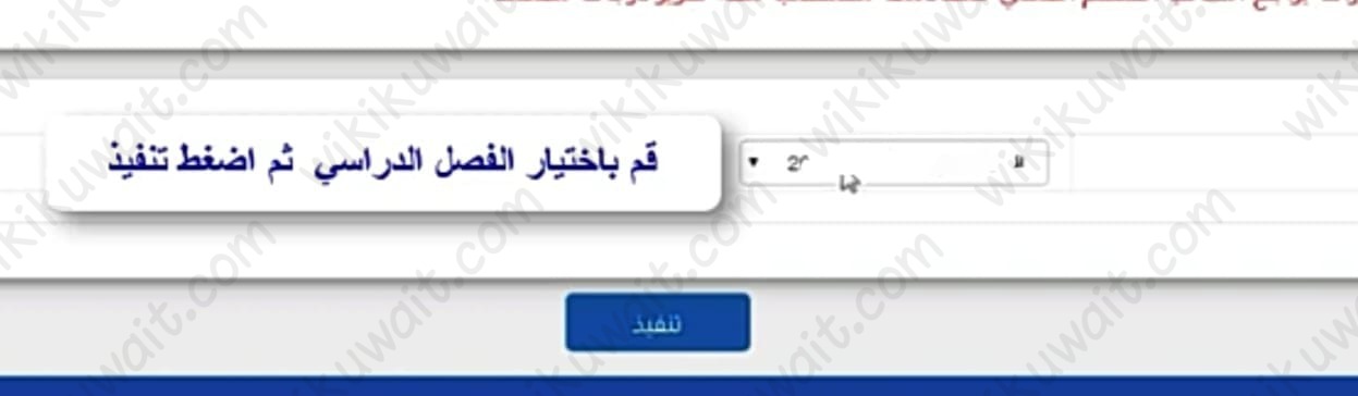 - النقر على أيقونة تنفيذ بعد تحديد الفصل الدراسي.